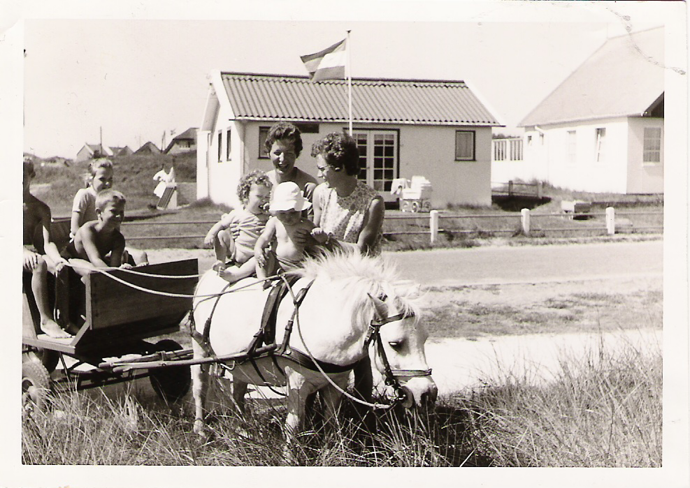 Vakantiepret in de zeventiger jaren van de vorige eeuw, met op de achtergrond vakantiehuisje Golfzang.